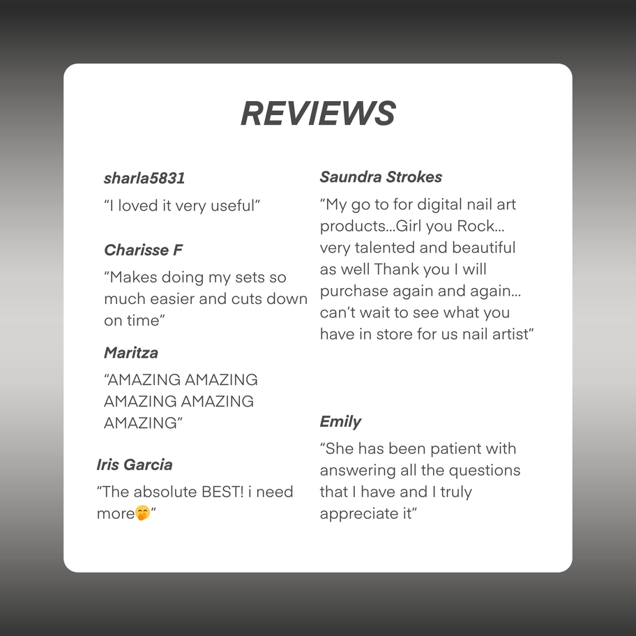Personal Use Only: For your own personal use as a nail technician, press on nail artist, nail enthusiast. Please do not re-upload or resell.